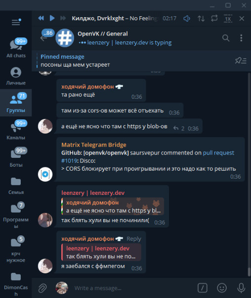 GitHub: [openvk/openvk] Parad1seF0x commented on pull request #512 (github.com/openvk/openvk/pull/512): Музыка (WIP):