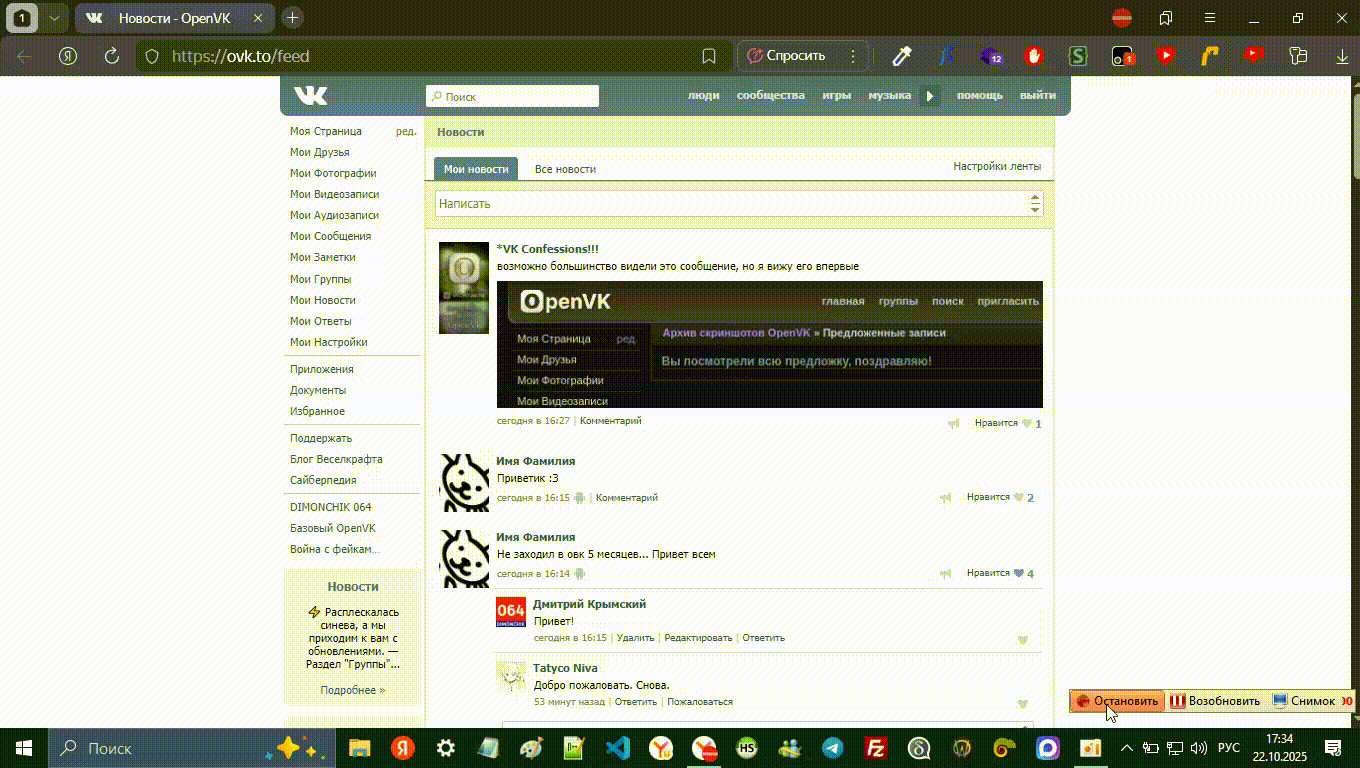 Подписывайтесь на мои группы в OpenVK и ВКонтакте!