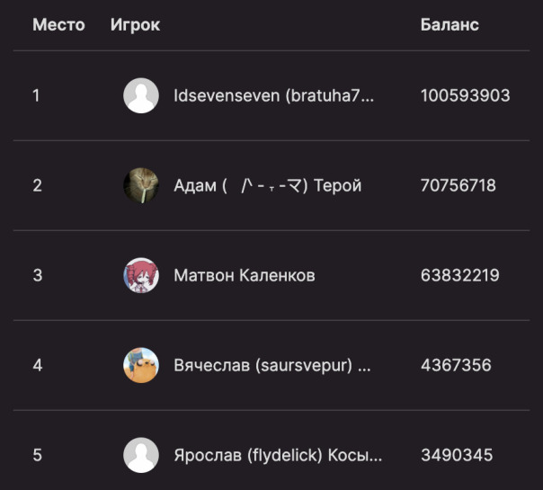А тем временем у нас первый игрок, набравший 100млн коинов!