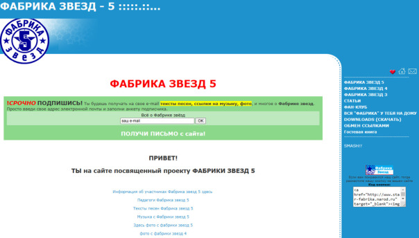 Фабрика Звёзд — фан-сайт музыкального телепроекта "Фабрика звёзд".