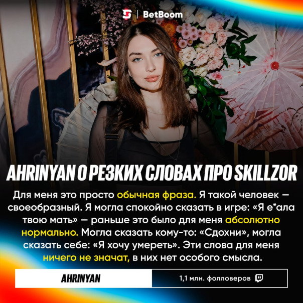 #Ahrinyan пояснила своё резкое высказывание о теоретическом свидании со #Skillz0r 💬