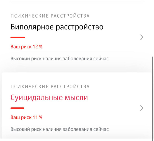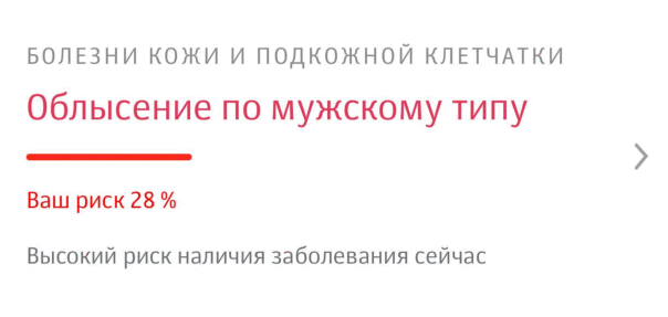 ![]() Слава также узнал о вероятностях развития некоторых заболеваний: риск облысения составляет 28%, биполярного расстройства — 12%, а склонности к суицидальным мыслям — 11%. |