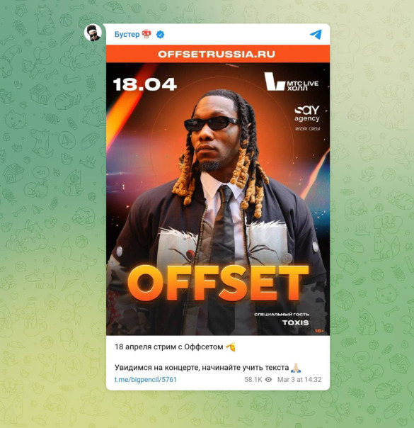#Buster анонсировал совместный стрим с американским рэпером Offset 18 апреля