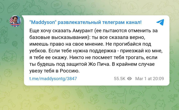 #Maddyson подержал #Amouranth после её критики слов ЛГБТ*-активистов