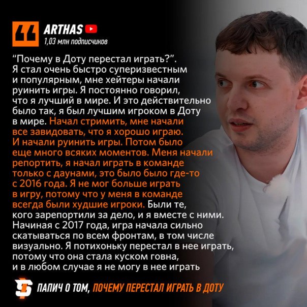 #Arthas рассказал, почему он перестал играть в Доту 🎮