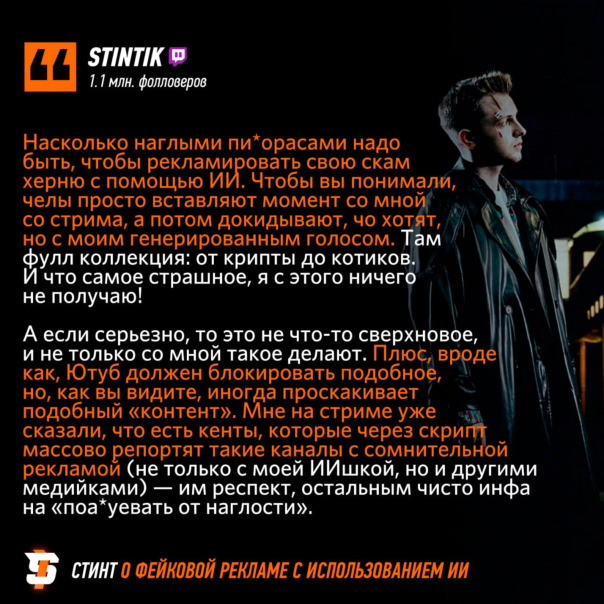 #Stintik высказался о скаме с использованием ИИ поддельных голосов блогеров и стримеров 🎙
