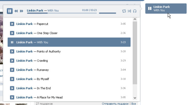 Учтите: после закрытия и повторного открытия плеера в списке останется только последних 20 аудиозаписей.