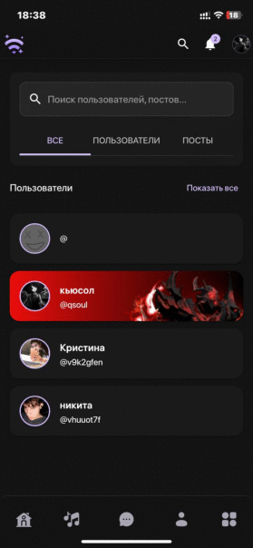 В дальнейшем: Мессенджер, Профиль и т.д