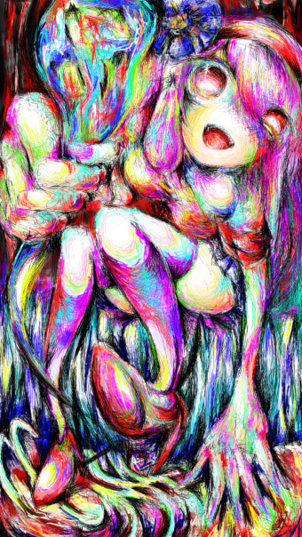 Пока что это, наверное, самый уникальный стиль, с которым я сталкивался на пиксиве. Шизофрения полнейшая, но завораживает.