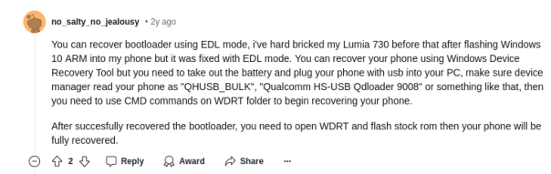 у меня микрософт люмия 532 больше не включается и в системе определяется как куалкомм хз юсб кьюлоадер 9008. Кто нибудь знает как вернуть его к жизни?
