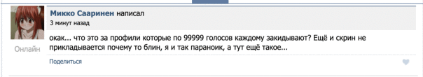 окак... что это за профили которые по 99999 голосов каждому закидывают? Ещё и скрин не прикладывается почему то блин, я и так параноик, а тут ещё такое...