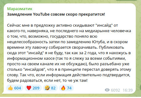 лучше бы РКН так боролись с пропагандой наркоты и прочей ереси во ВДылдакте, как это хотят сделать с ютубом