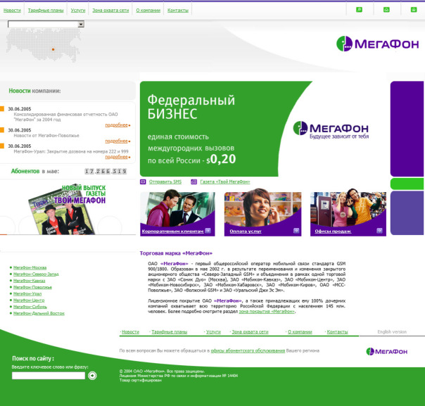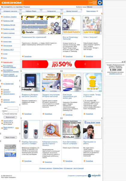вот так выглядел сайт связного в 2005-2006 году.