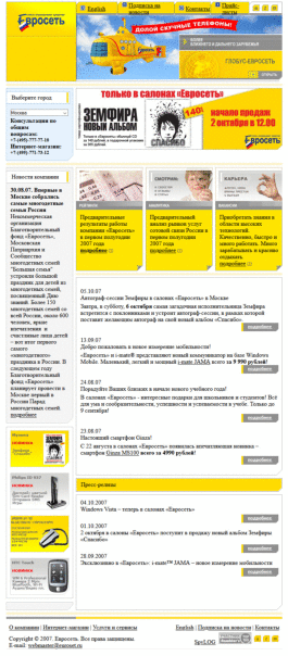 Вот так выглядел сайт Евросети в 2006-2007 году.