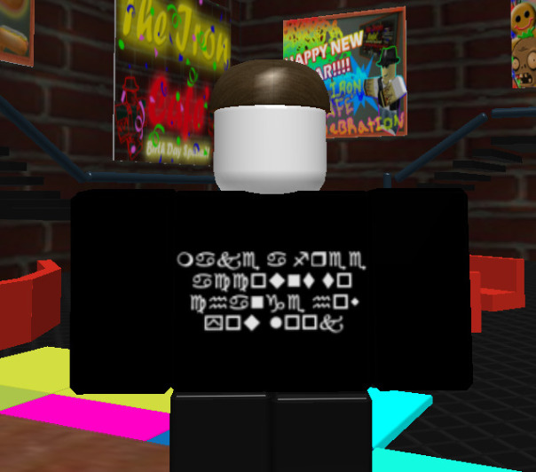 логотип роблокса и рубашка гостя на щрифте виндингс!