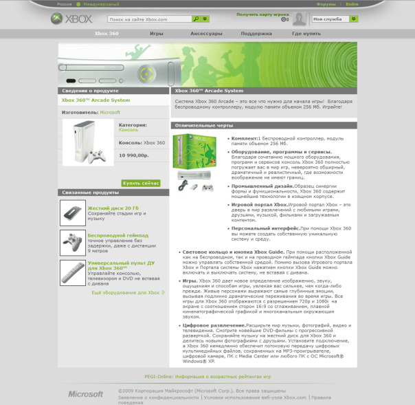 надеюсь что я не надоел вас со своими старыми сайтами) вот так выглядели страницы с xbox 360 в 2009 году.