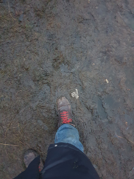К ботинкам липнет вся хуйня, но всем назло они блестят