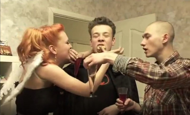тусили у Оли компашкой, королёв притащил секс куклу, в подарок Ольке