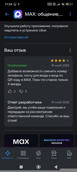 MAX очистил репутацию в Rustore.